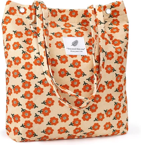 Women Tote Bags Grocery Shoulder Bag Corduroy with Inner Pocket for Work Beach Lunch Travel Shopping Shopper Handbags(Orange