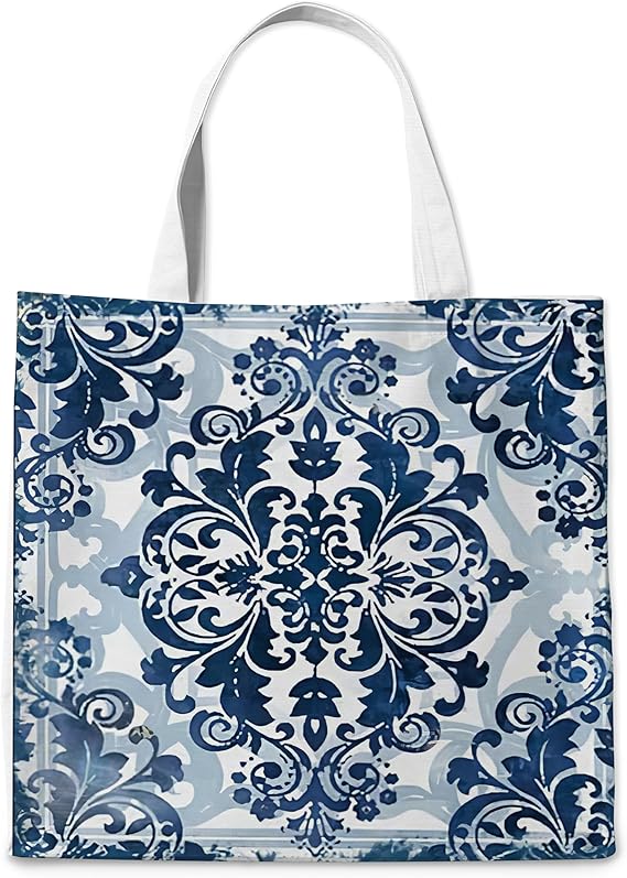 Chinoiserie Blue and White Canvas Tote Bag for Women, Vintage Floral Reusable Tote Bags Gifts for Women Shopping