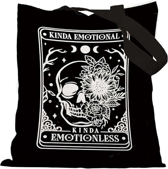 Tarot Card Kinda Emotionless Skull Floral Tote Bag, Halloween Canvas Tote Bags for Women, Goth Gifts for Women, Halloween Spooky