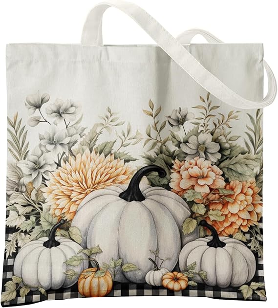 Fall Pumpkin Canvas Tote Bag,Autumn Fall Canvas Shoulder Bag For Women,Women Reusable Canvas Tote Bag