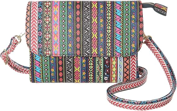 Vintage Embroidered Canvas Small Flip Crossbody Bag Cell Phone Pouch for Women Wristlet Wallet Bag Coin Purse